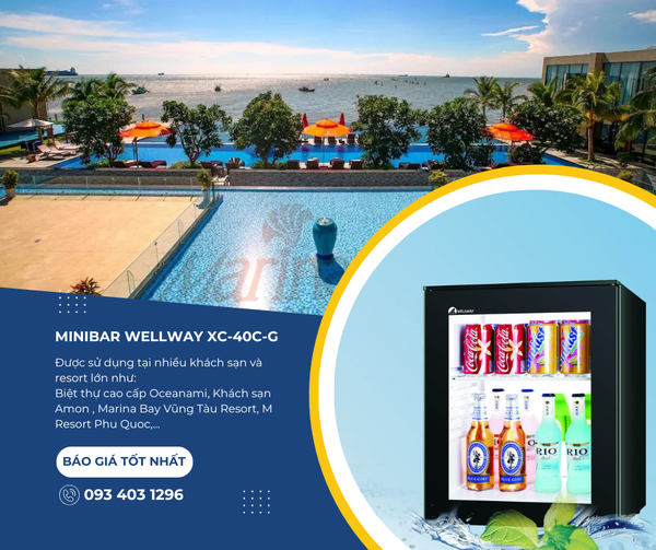Đặc biệt với mẫu Minibar Wellway XC-40C-G, được sử dụng tại nhiều khách sạn và resort lớn như: Biệt thự cao cấp Oceanami, Khách sạn Amon , Marina Bay Vũng Tàu Resort, M Resort Phu Quoc,...